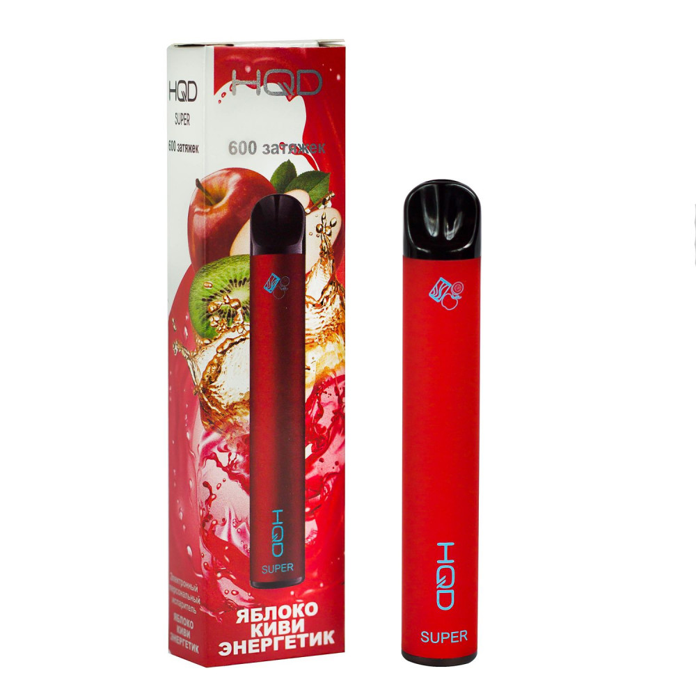 | HQD видыSuper (Супер) | HQD вкусыЯблоко Киви Энергетик | HQD количество в блоке10 шт |
